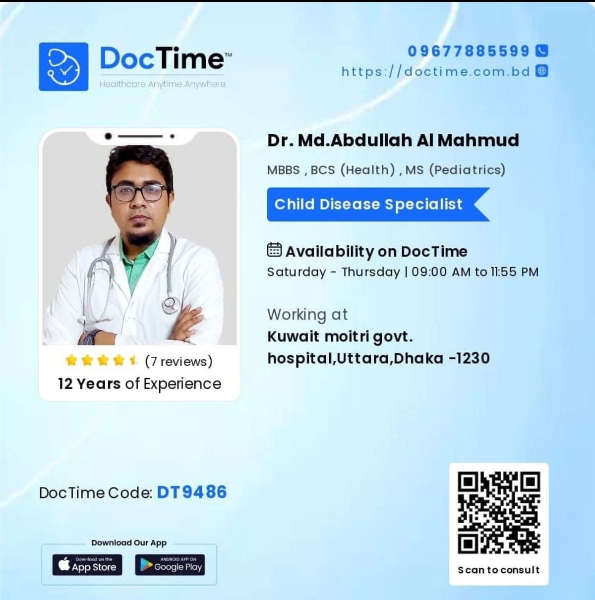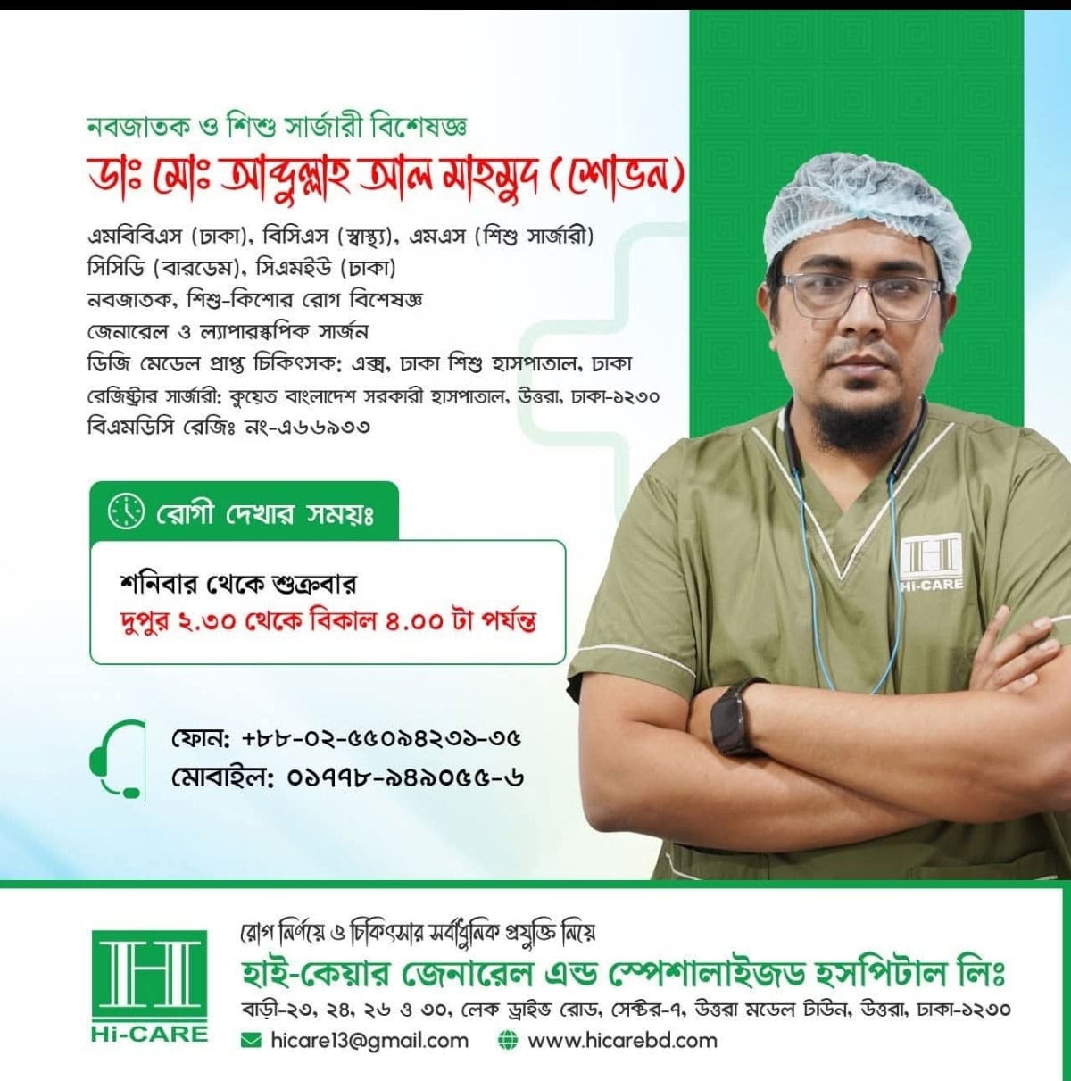 He Receive his MS in pediatric surgery in 2023 and he joined in BCS health cadre service in 2019.