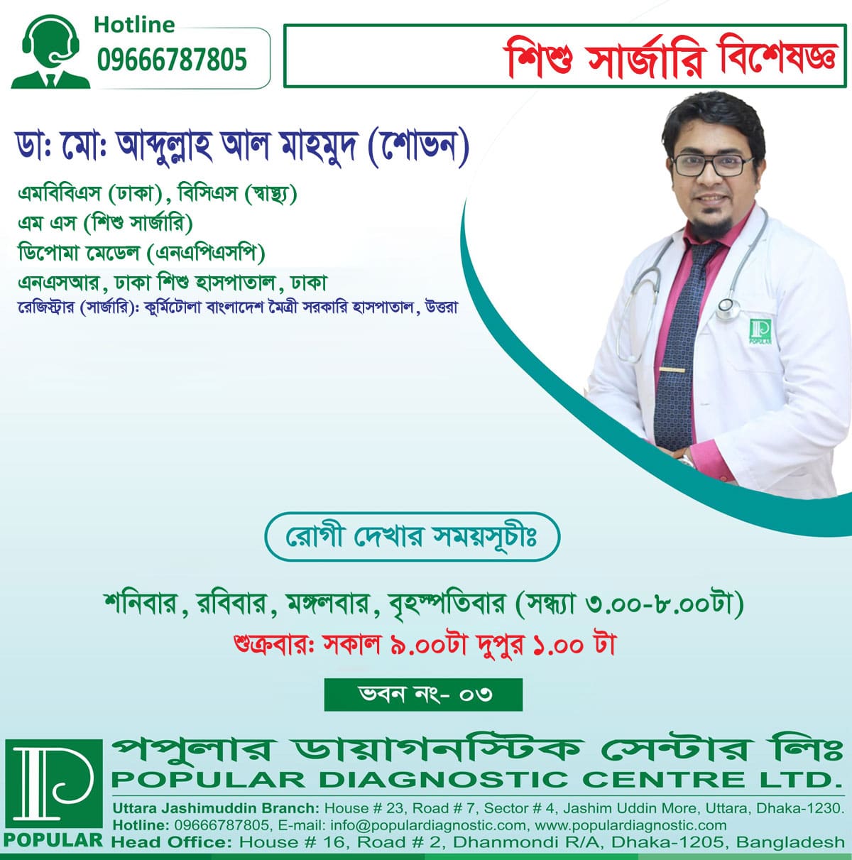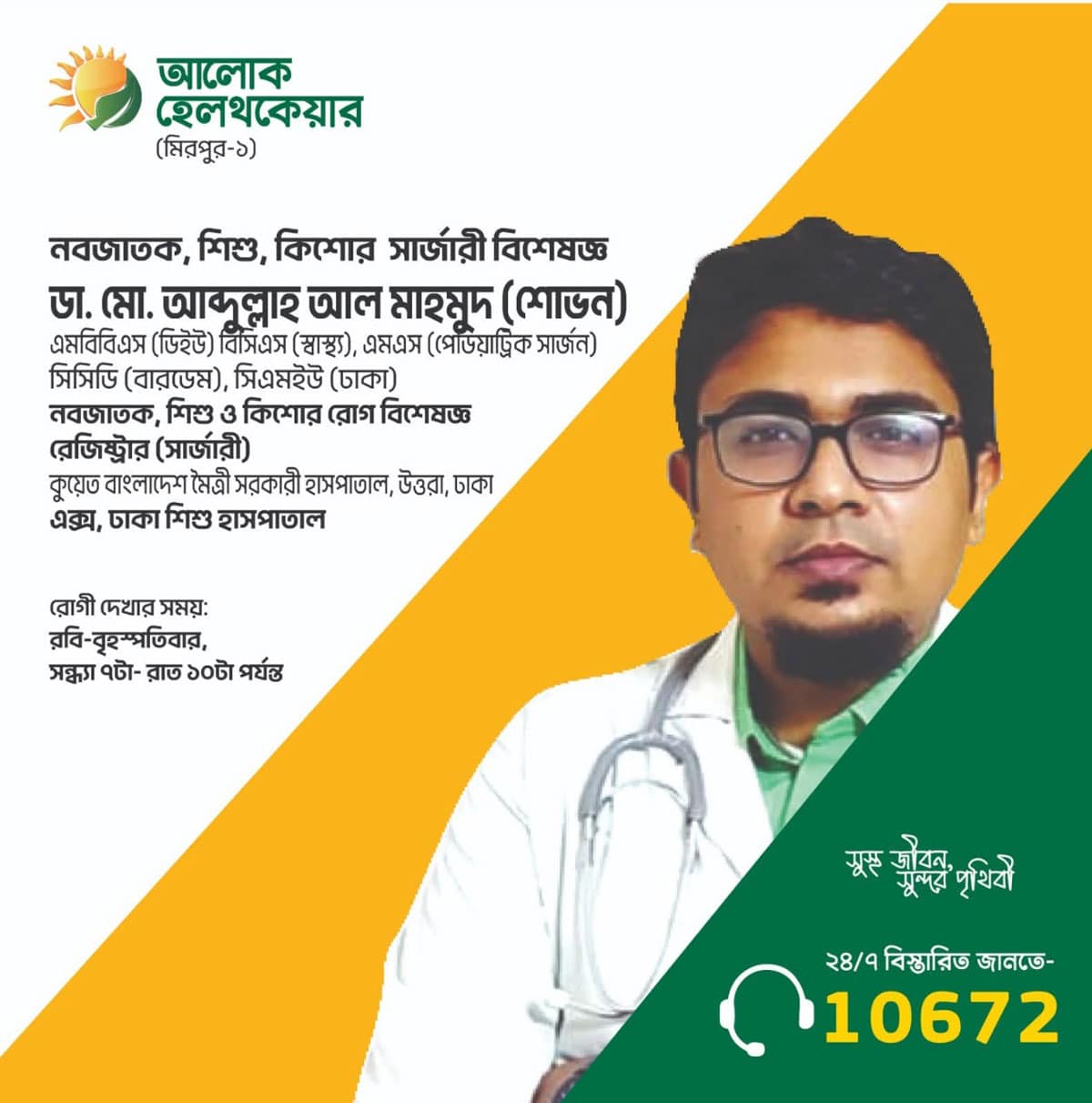 He is committed to providing optimal surgical care for children through ongoing research and evidence-based practices. In 2016 Dr. Shovon joined in MS course in Bangladesh Shishu Hospital and Institute under BMU(Bangladesh Medical University)